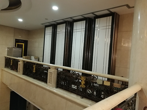 東莞富萊大酒店隔斷屏風(fēng)采用了廣州廣成建材實(shí)業(yè)有限公司提供的不銹鋼裝飾面隔斷屏風(fēng)。