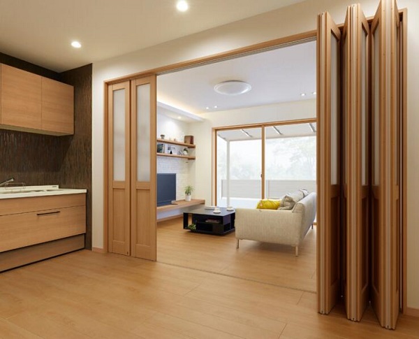 與地板保持統(tǒng)一感,散布空間??梢愿鶕?jù)用途打開和關(guān)閉的折疊門類型