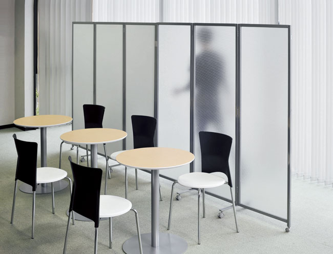 如果僅在必要時使用活動隔斷,則可以選擇隔板連接部分能折疊的“折疊式”。根據(jù)要使用的場景,可以自由布局。如果安裝了腳輪,移動也不費力,能進一步提高易用性。