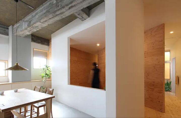 這是一幢舊雜樓的翻新樓。為了用墻壁分隔空的空間,建筑師和住在那的人就如何生活相互討論。進行這項裝修的建筑師說:“我們正在嘗試設(shè)計一個空間,人與建筑物可以繼續(xù)成長。” 例如,即使是照片中的隔墻,也可以在兒童可以窺視的高度提供一個開口,光線和空氣流過沒有提供配件的墻壁上,這樣家庭就可以快樂地成長。如圖墻面有一個大開口,所有,劃分空間最重要的是弄清楚您要達到什么目的。