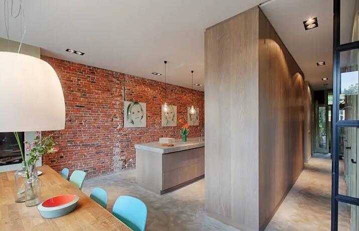 這間現(xiàn)代廚房來自荷蘭。在此示例中,廚房和走廊被內(nèi)置家具隔開。近來,經(jīng)常使用內(nèi)部技術(shù),這種技術(shù)使家具具有結(jié)構(gòu)功能而無需建造墻壁。這樣,由于看不到墻壁,它成為一個整潔的空間。在像照片這樣的大空間中,隔斷與廚房柜臺的材料相結(jié)合,幾乎沒有“家具”的形象,使時尚空間更加絢麗。
