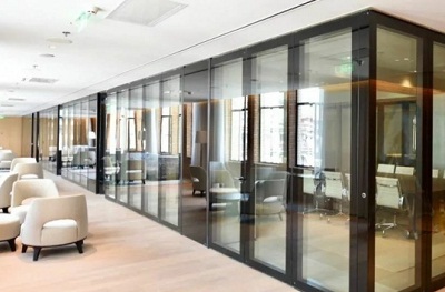 帶框玻璃活動隔斷,主要是用在會議室等地方。這些地方,既要達(dá)到一定的區(qū)域分割,又要在視覺上達(dá)到通透性。關(guān)鍵的話它又能夠像固定的玻璃隔斷一樣可以起到隔音的作用。通常情況下,帶框玻璃活動隔斷內(nèi)部還可以裝上手動或電動的百葉,這種情況下的話,特別適合在辦公會議等地方使用。它可以靈活的滿足人們在辦公的情況下,對于視覺和聲音上的隱私需求,又能照顧到辦公區(qū)域分割的靈活處理。單個公司自己辦公場合通常采用此種形式。