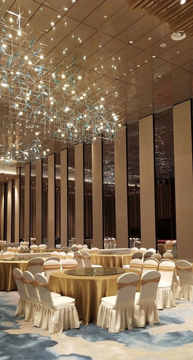 酒店活動隔斷墻具備更高的使用效果,酒店一般做的都是活動隔斷,活動隔斷一般就是高端大氣,活動隔斷可以推拉自由,不占空間,隔起來就是一個房間,分開就是一大間房間,活動隔斷墻能隨時改變空間大小的特性密不可分的,無論是將大廳分隔為小型宴會廳,還是將大空間劃分為多個獨立小包廂,都可以輕松辦到。